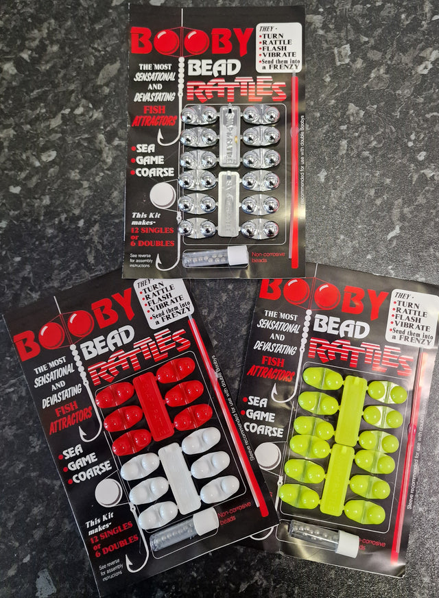 The original flash and rattle bead, great to add attraction to any rig from the shore or boat. Particularly good for flatfish including Halibut., can be used as single or double beads.