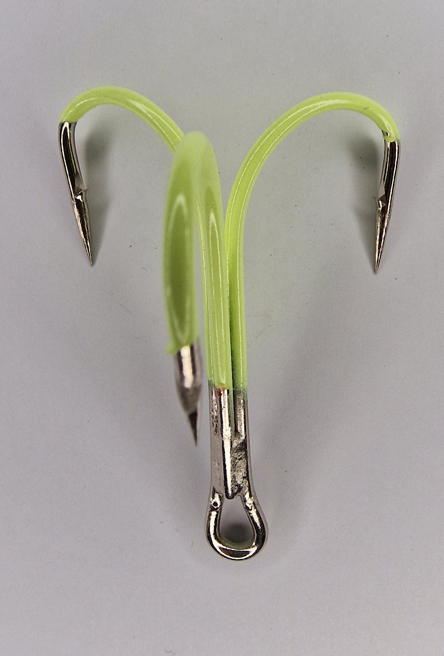 Glow in the dark high quality treble hooks to add light to your deep water lure fishing. Ideal to add to Pirks or Shads to enhance in the darkness of deep water.