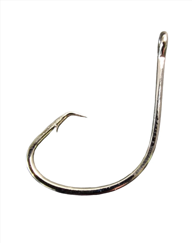 Super sharp Hi Carbon Steel Circle Hooks. Nickle plated offset point in Bulk packs of 100