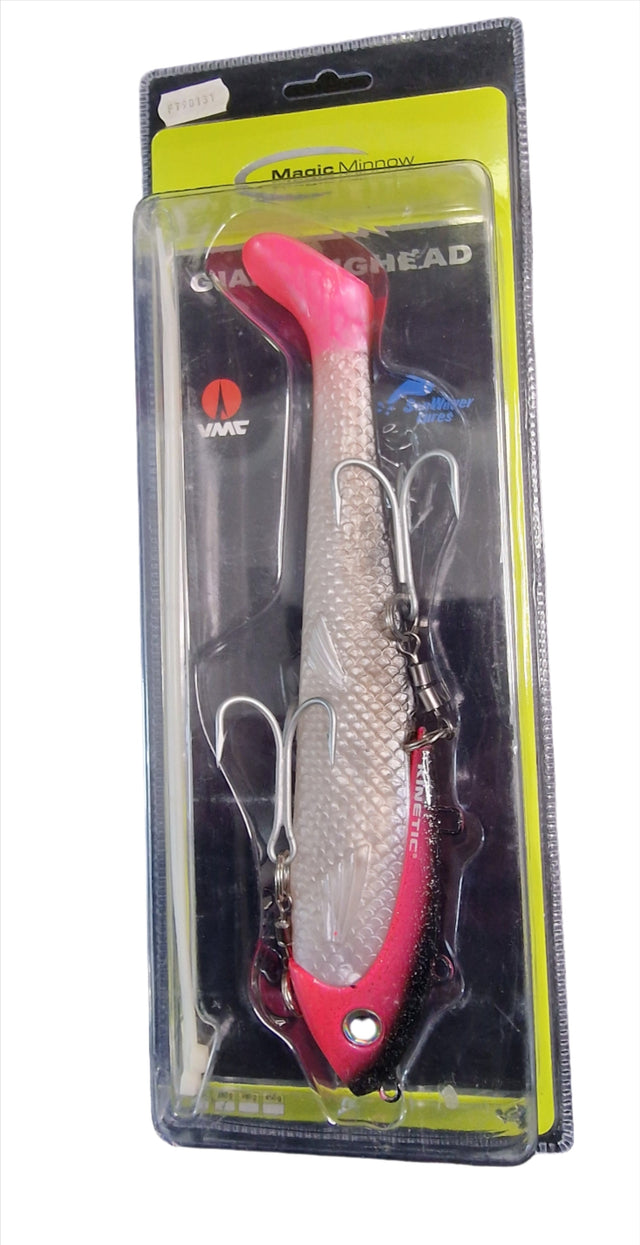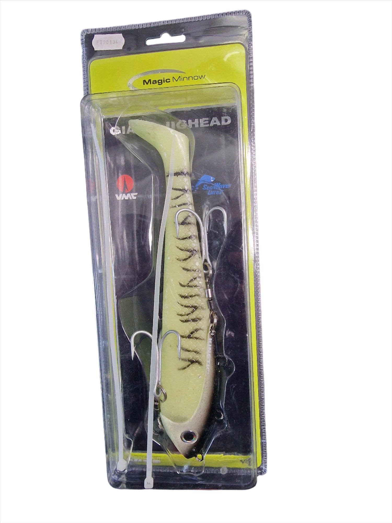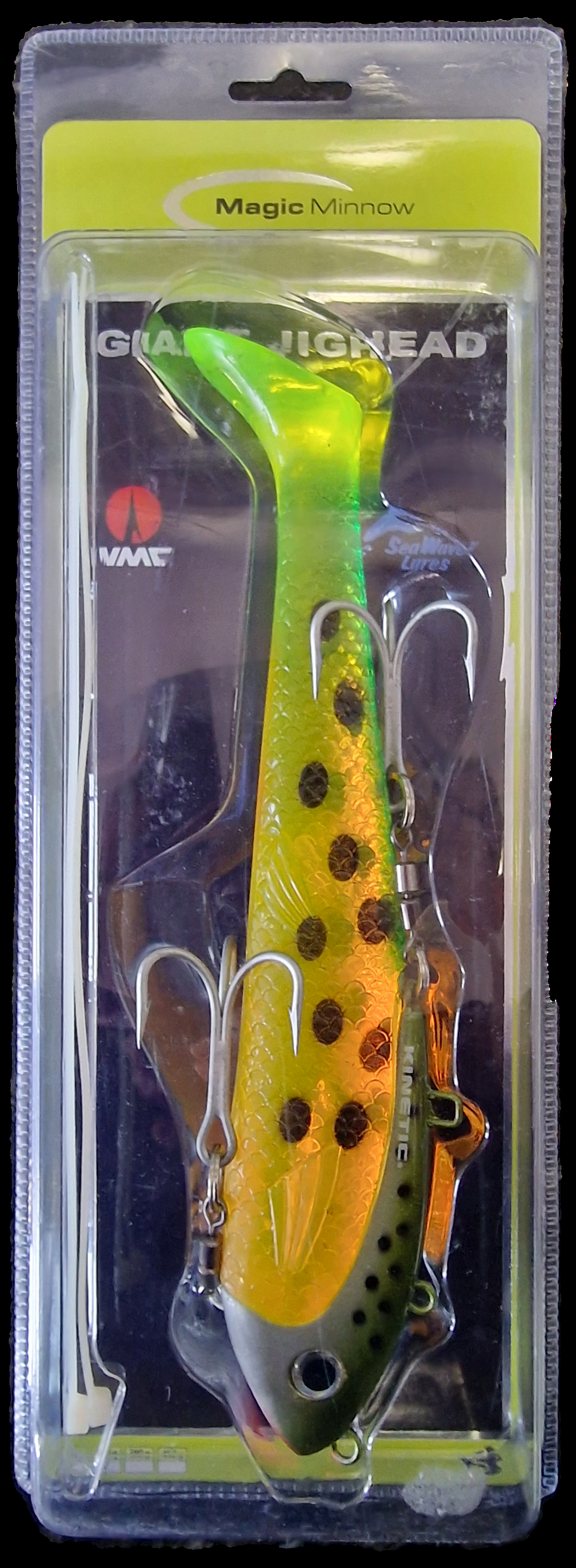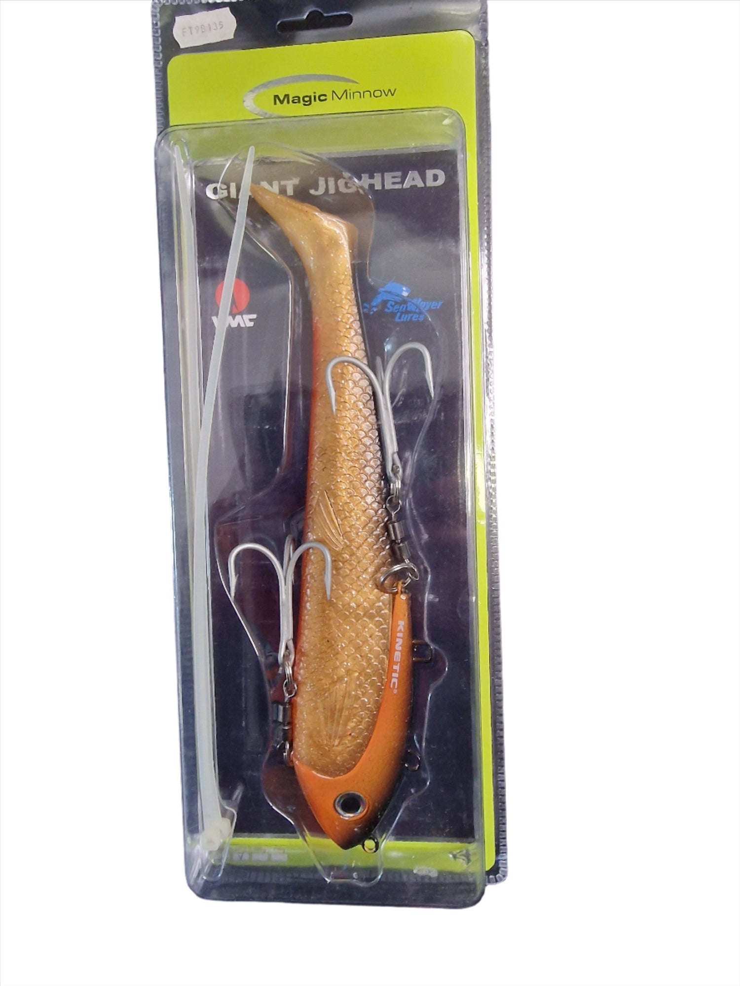Kinetic, Magic Minnow Giant Jig Head 280g. Incredibly lifelike soft baits Big baits for targeting Halibut, Cod, Big Coalfish etc in deep water.