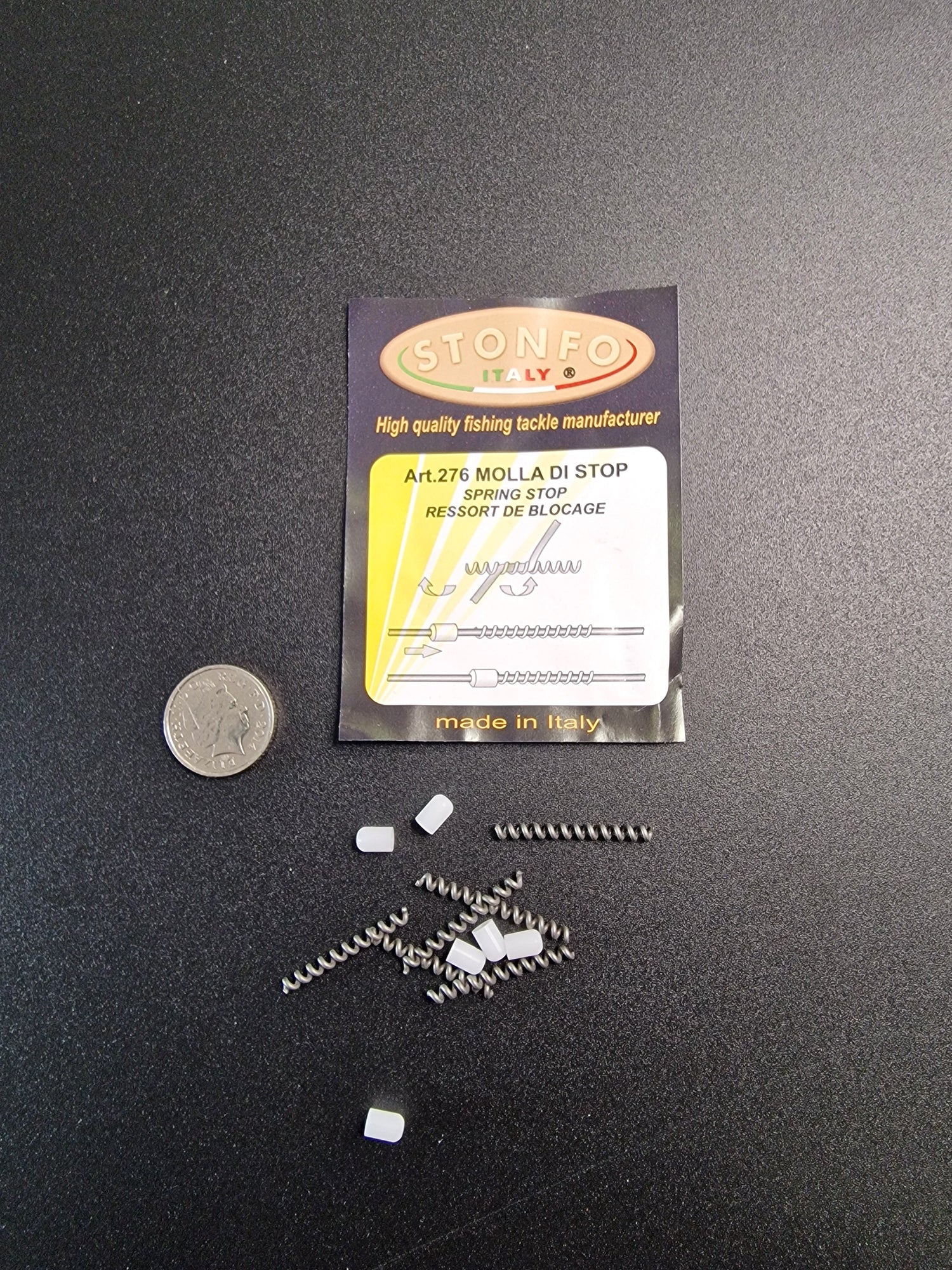 Stonfo Spring Stop, used to fix accessories, beads,booms, Stonfo fast connector etc on the rig body. 6 per pack.