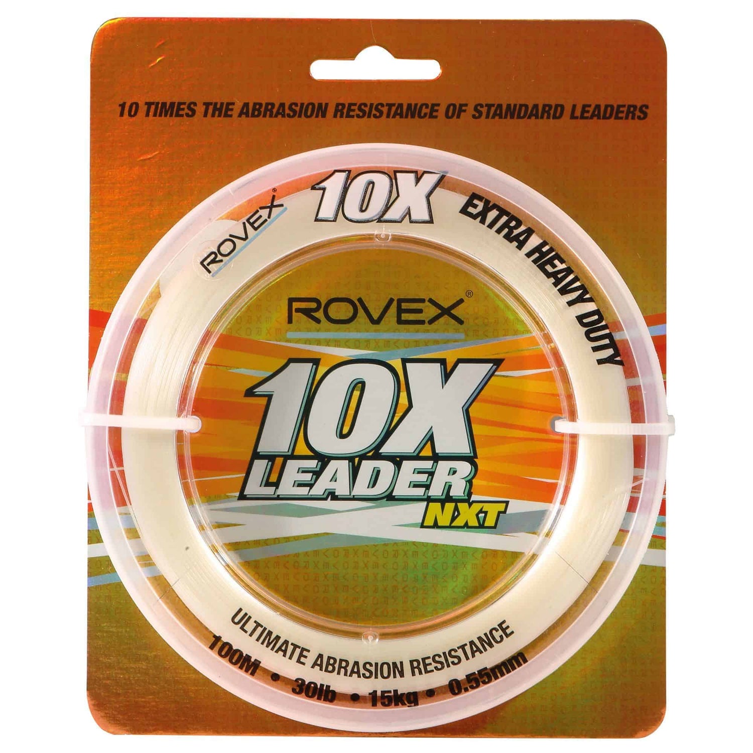 Rovex 10X Mono Leader is made using the latest advanced polymer bonding technology to create a premium-quality heavy-duty monofilament nylon leader that offers up to 10 times the abrasion resistance of most other mono leaders of the same diameter. The 10X Mono Leader formula is as tough as a quality nylon leader gets and will be first choice for serious saltwater anglers targeting everything from big conger to sharks or skate, or further afield giant trevally to tuna or billfish.