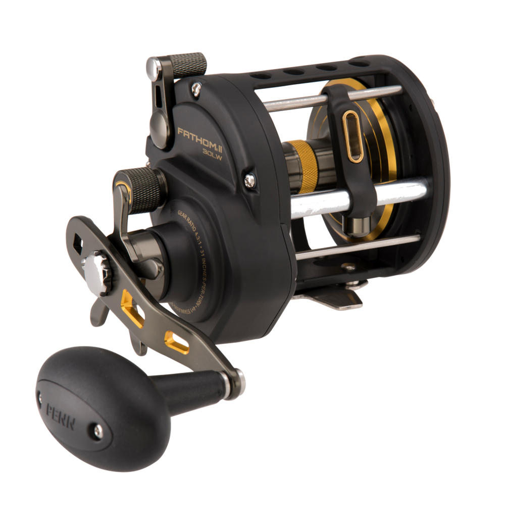 The PENN Fathom II Level Wind's heavy duty construction and powerful gears make it a true workhorse and favourite of charter boat Captains. It is designed to handle extreme abuse day-in and day-out. Whether you are bottom-fishing or casting live bait, the Fathom II will stand up to the hardest fishing conditions. A Full Metal Body keeps precise gear alignment while the Fast Gear Access Side plate allows for easy maintenance. The Fathom II also houses our powerful HT-100 drag system to stop any fish that bites. Available in standard, line counter and left hand models
