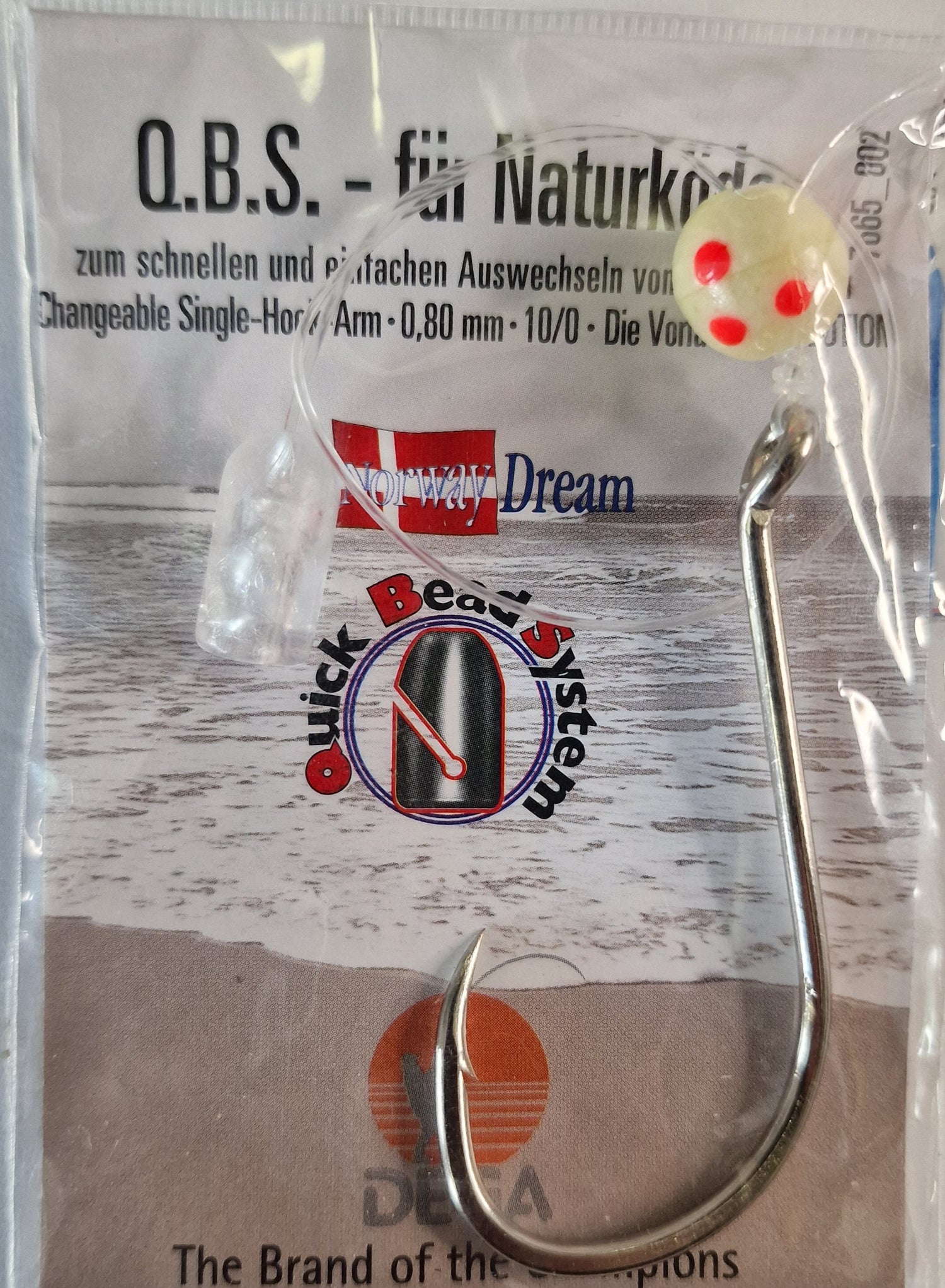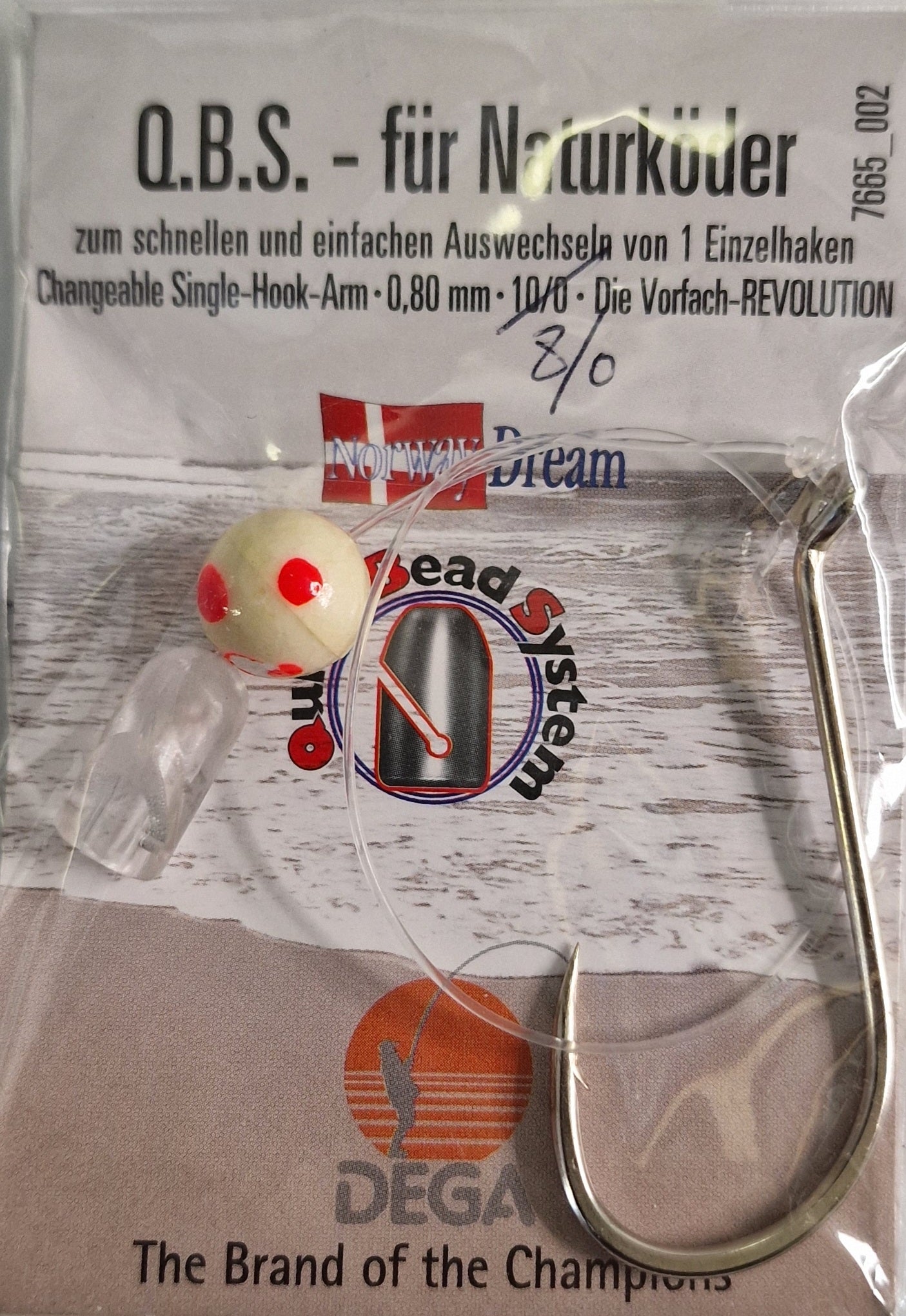 A Range of ready rigged lures and components from European manufacturer Dega utilising their unique Quick Bead System that instantly clicks onto your rig body to enable quick changes of snood and also allow it to rotate freely.