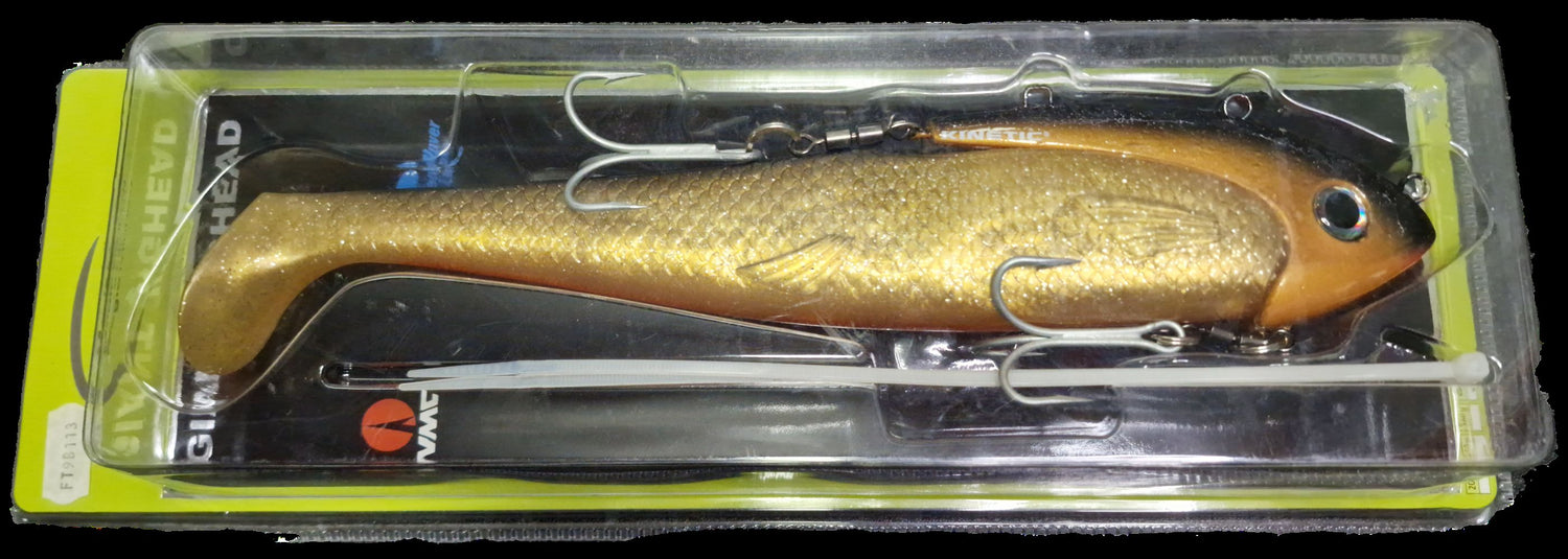 Kinetic, Magic Minnow Giant Jig Head 280g. Incredibly lifelike soft baits Big baits for targeting Halibut, Cod, Big Coalfish etc in deep water.
