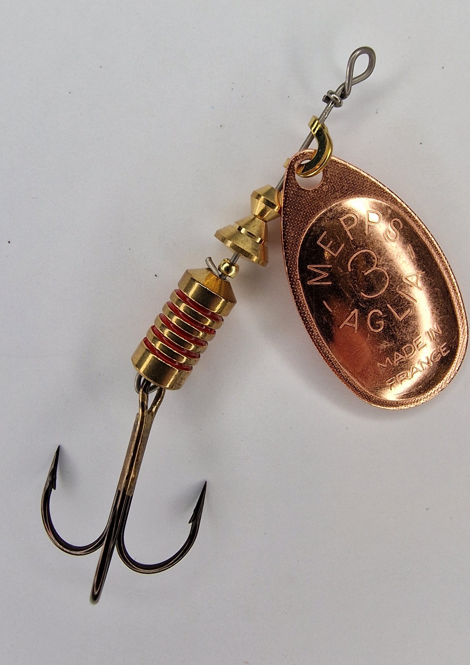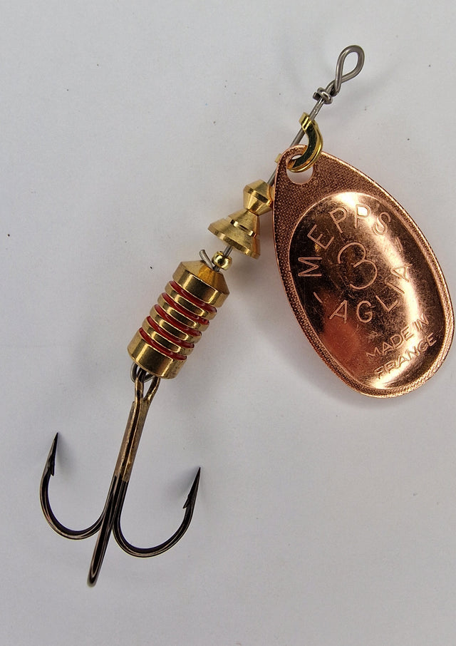 The Mepps Aglia spinner is the original French spinner. It is the World's #1 Lure. More trophy fish have been caught on the Mepps Aglia than any other lure. The Mepps Aglia is extremely popular with fishermen world-wide because it will catch just about any freshwater fish and many species of saltwater fish.