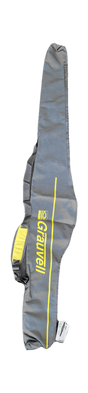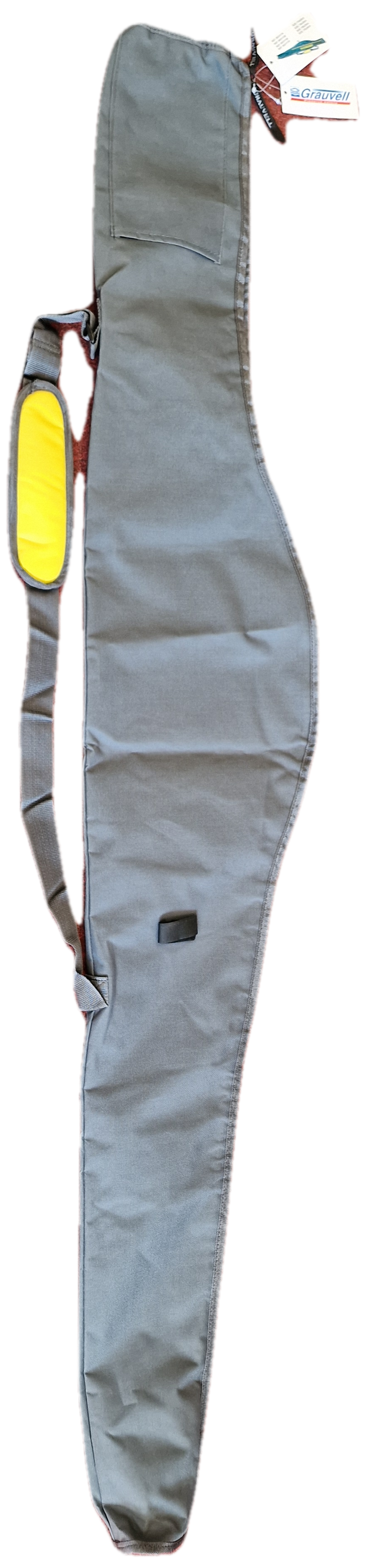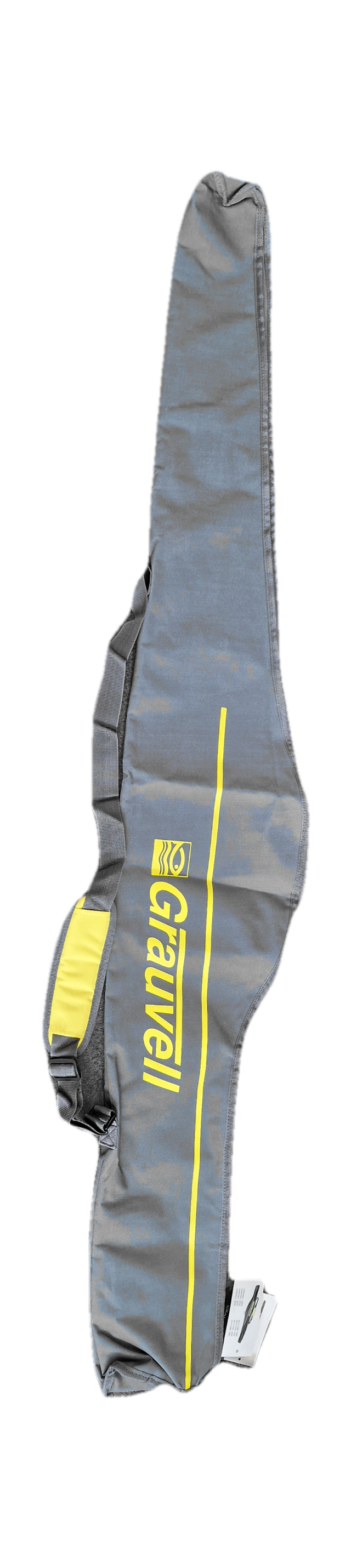 Grauvell Rod bag 176cm x 29cm at reel pocket, full length zip, shoulder strap. 1 outside pouch for rod stand/ gaff etc with velcro strap support.