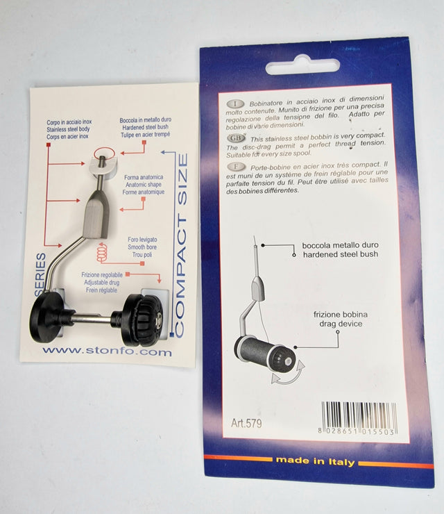 High quality weighted stainless steel bobbin with quick adjusting disc-drag that allows a perfect thread tension. Tube with very strong hardened steel bush to prevent fraying. Suitable for every size spool.