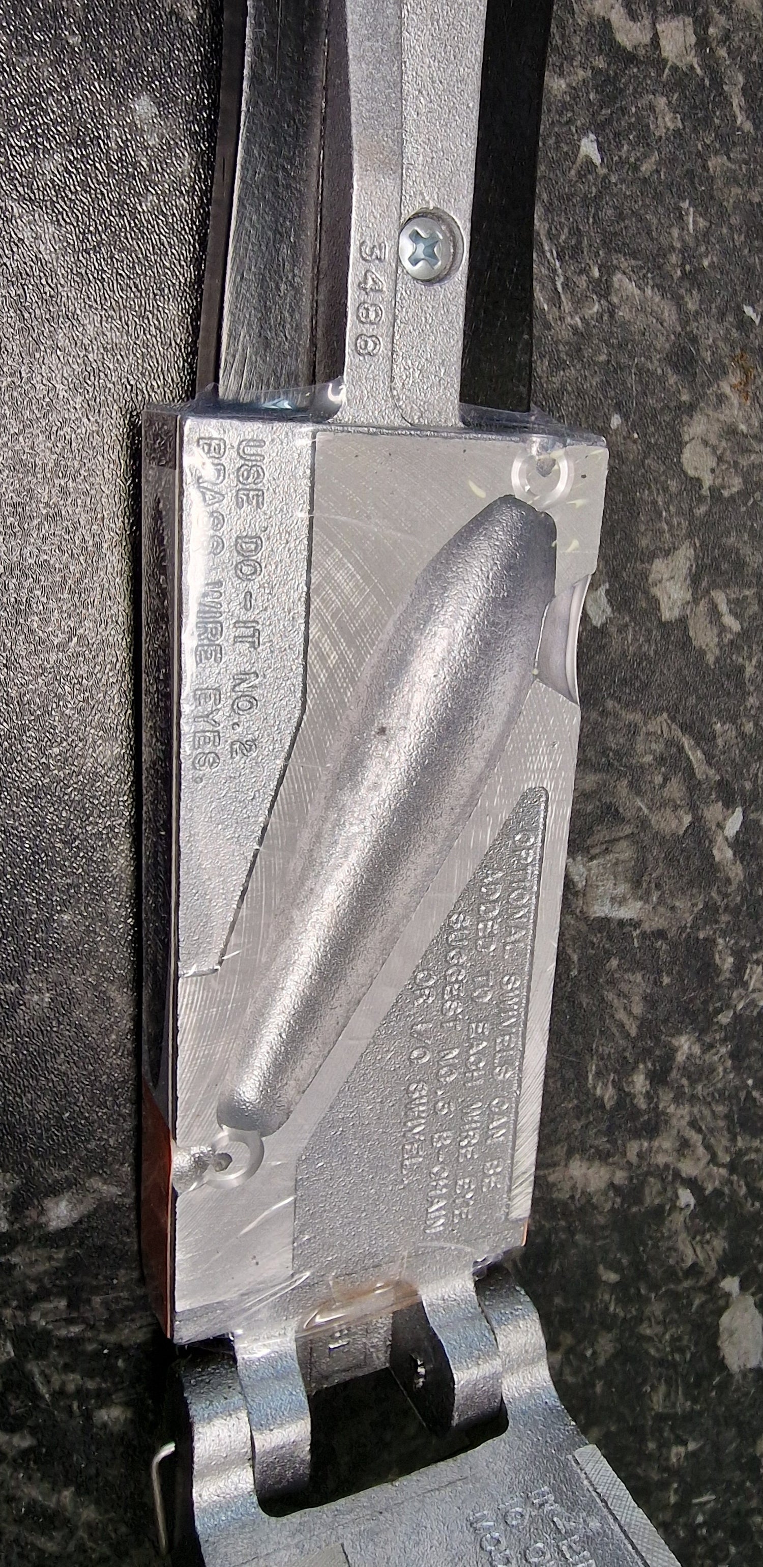 Do-it moulds are the best moulds on the market, they are easy to use and do not require to be clamped as the handles provided allow you to hold the mould while pouring the lead and is easy to pull apart to release the sinker.